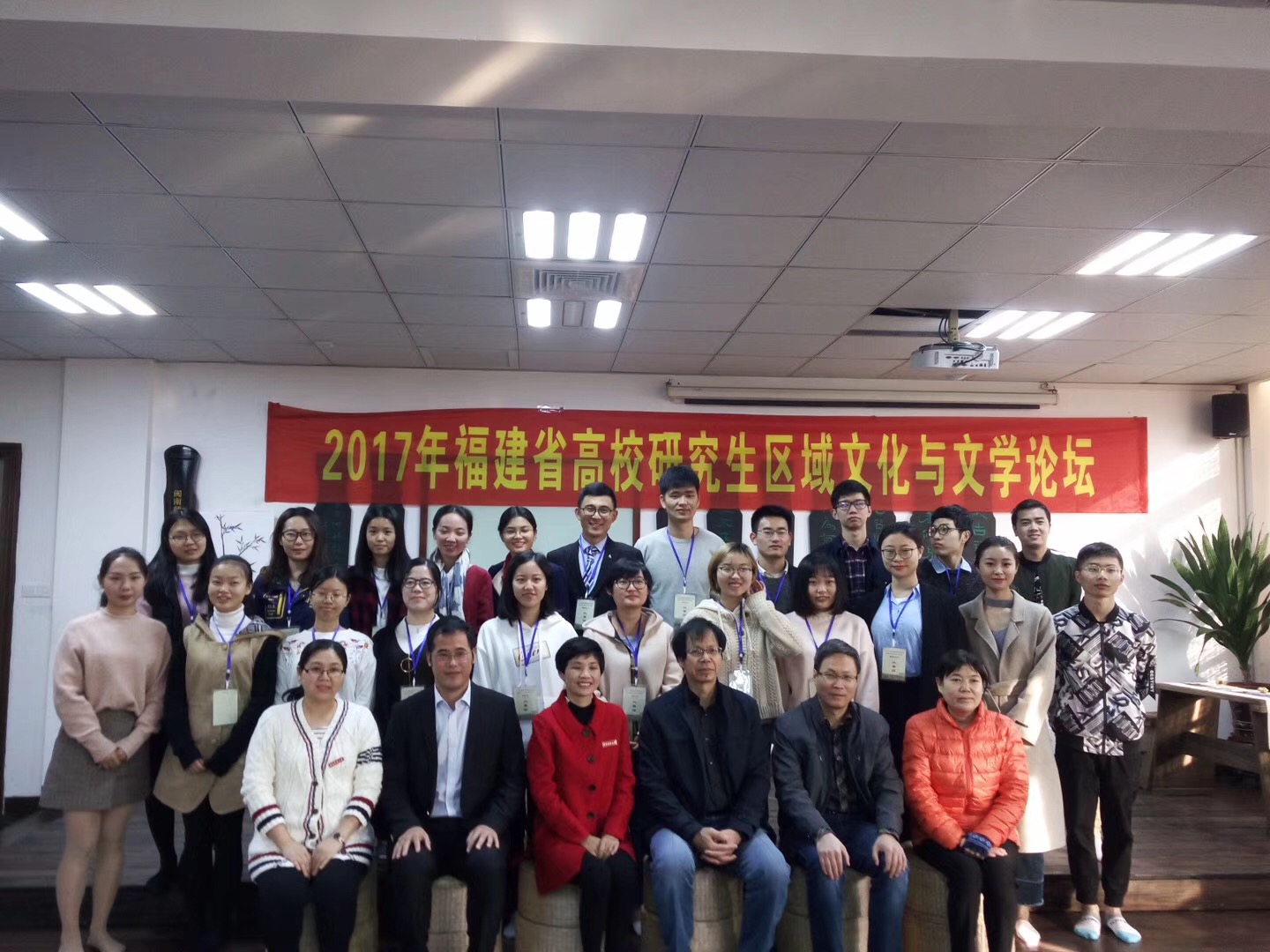 福建省高校研究生区域文化与文学论坛于2017年12月9日在漳州闽南师范大学博文楼406举行。福建师范大学,华侨大学,集美大学以及闽南师范大学的学生代表参加了此次论坛,与会人员共计二十余人。闽南师范大学文学院副院长陈练军,书记赵丽霞,教授沈金耀,教授张伸桐,教授宋巧燕,辅导员陈芳苹出席本次论坛。