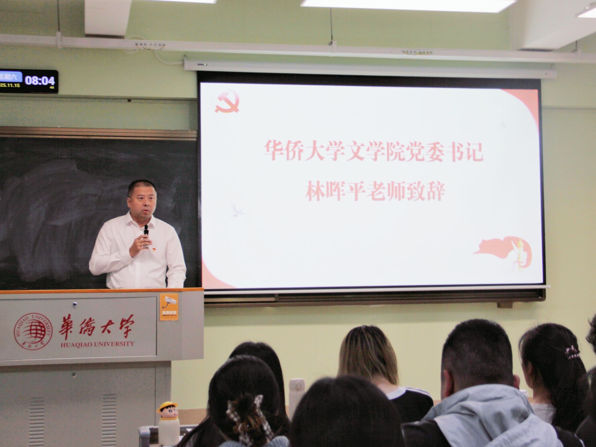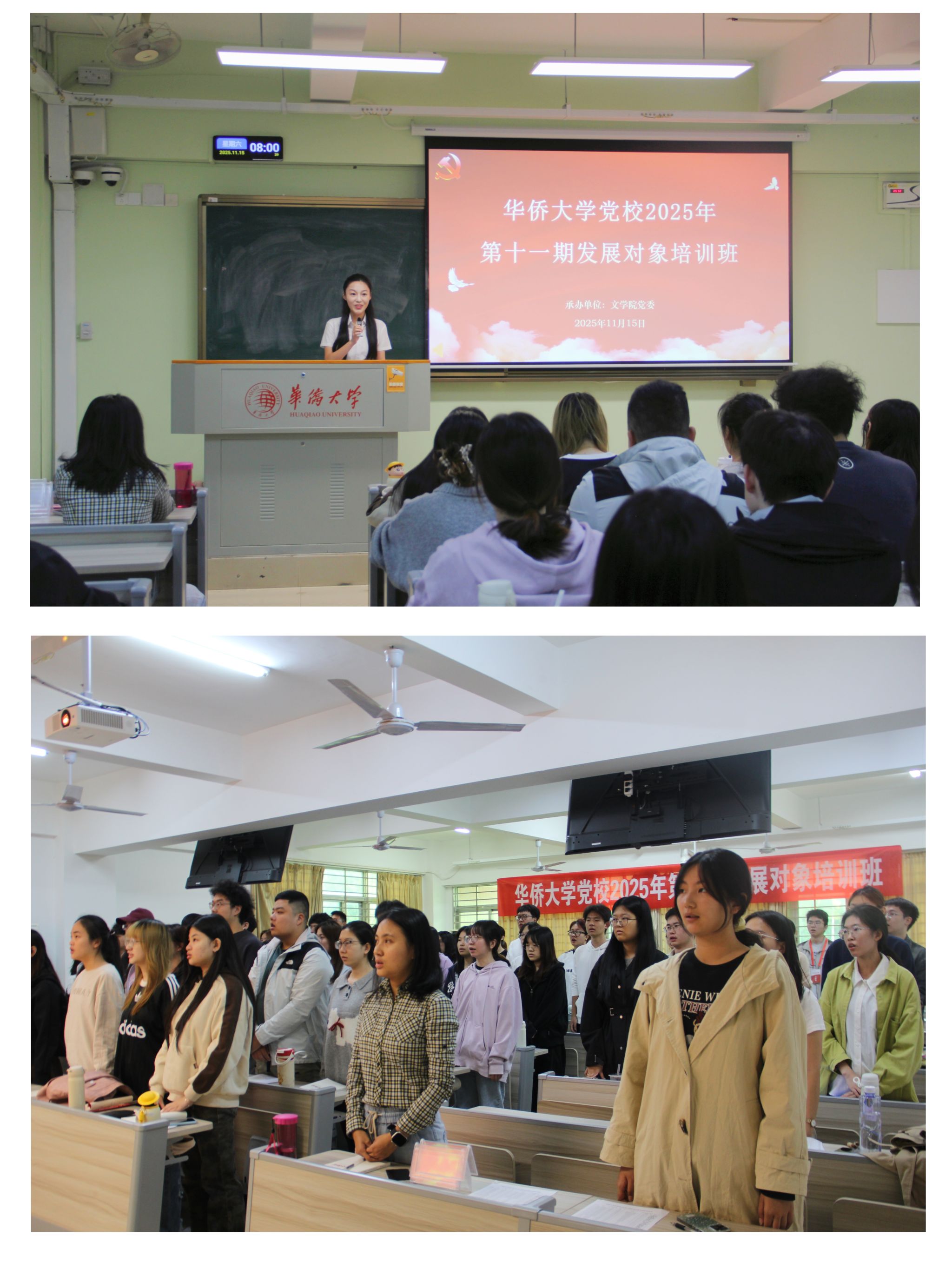 11月15日上午,华侨大学党校2025年第十一期发展对象培训班于经管楼3-1教室开班。本次培训班由华侨大学党校第一分校文学院党委承办,共有来自经济与金融学院、体育学院、文学院、国际学院、信息科学与工程学院以及工商管理学院的68名发展对象参训。