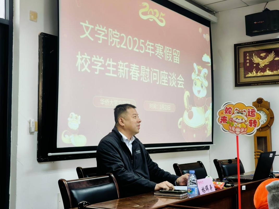 1月23日上午,文学院于学院201会议室举办寒假留校学生慰问活动,学院党委书记林晖平出席会议,为留校学生送去关怀与新春祝福。