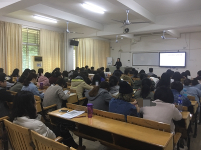 课堂中,刘小庆与同学们分享了自己的就业成长历程,介绍了企业岗位的职责需求,然后从“明确自己、岗位目标、企业现状、公司选择”等方面为同学们的就业思维、就业能力提出了建议。刘小庆以丰富的职场案例和积极的现场互动,为同学们带来了一场精彩纷呈的授课,同学们在听了讲座后纷纷表示受益匪浅。