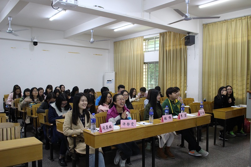 此次评比大赛分三个部分组成,首先进行的是优秀宿舍长评比大赛,参加比赛的五位宿舍长分别是15汉二的回凯彬和叶华玲,15汉一的姚子凡、黄旭华和陈小云。每位宿舍长进行了三分钟的汇报,他们以ppt的形式,向观众们展示了各自宿舍的风采。