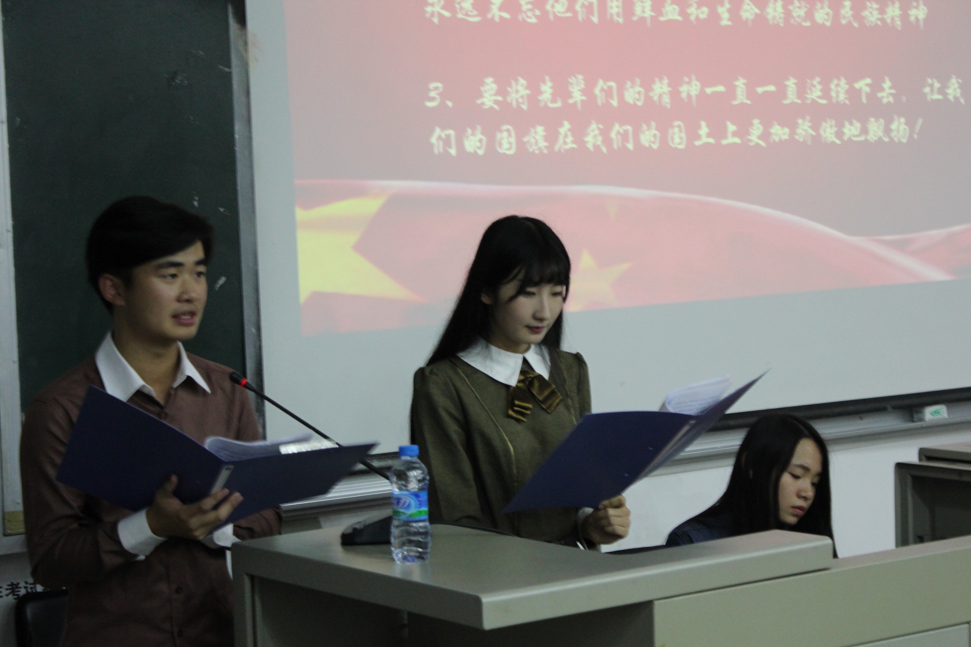 本次团课邀请了校团委秘书黄炳超老师、文学院兼职辅导员李岩、文学院团副闪菲娅为同学们进行演讲。首先出场的是黄炳超老师,他用三个实例生动介绍了关于华侨大学“挑战杯”学生课外学术科技作品竞赛的相关事项,黄老师鼓励同学们要积极参与学术创新活动,并要求同学们通过活动增强自己的学习能力和团队合作能力,在能力得到锻炼的同时收获友情和经验。随后,文学院兼职辅导员李岩用自己的社会实践经历,特别是到井冈山培训基地学习的经历,教导学弟学妹们要怀有一颗感恩的心,感谢革命先辈为我们现在的和平生活做出的努力和牺牲,并鼓励学弟学妹们积极参与到推动红学的工作中来,将爱国主义情怀传递下去。最后,闪菲娅学姐与同学们分享了她去甘肃支教的经历,她告诫学弟学妹们要尽自己所能去帮助那些需要帮助的人,希望同学们能更多地为他人着想,学会吃苦耐劳,珍惜当下的生活,最后,她建议新生作为大学生,应该有着社会责任感和奉献感,要勇于担当。