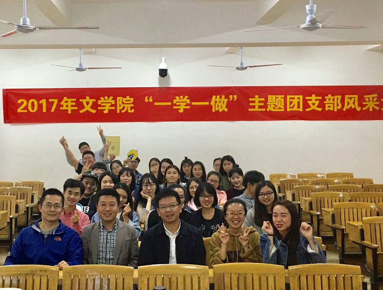 2017年4月27日晚上19:10分,文学院“一学一做”主题团支部风采大赛在经管203顺利举行。院党委书记孙辉轩、院团委书记张伟、院办公室主任薛凯、文学院两委常委出席了本次大赛,并担任本次大赛评委。参与本次大赛的7个班级团支部,以ppt展示以及现场演讲解说的方式对自己团支部近一年的活动进行展示与总结。