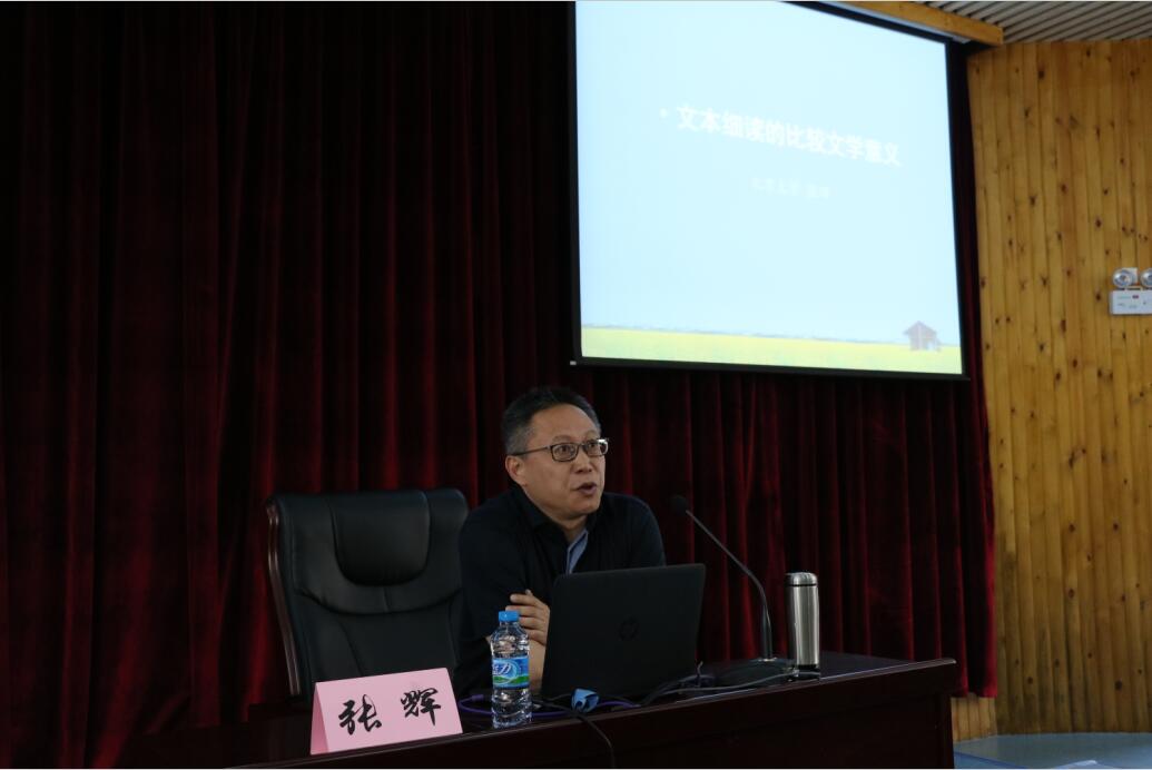 5月13日下午,以“文本细读的比较文学意义”为题的专题讲座在庄为烜报告厅顺利举行。讲座由文学院院长孙汝建教授主持,北京大学比较文学与比较文化研究所所长、博士生导师张辉教授主讲。文学院、华文学院以及外国语学院的老师和同学们聆听了本次讲座。