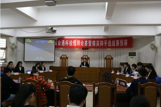 4月10日,华侨大学第29届“会通杯”校园辩论赛暨精英辩手选拔赛(泉州校区)在祖航楼小模拟法庭火爆开赛。