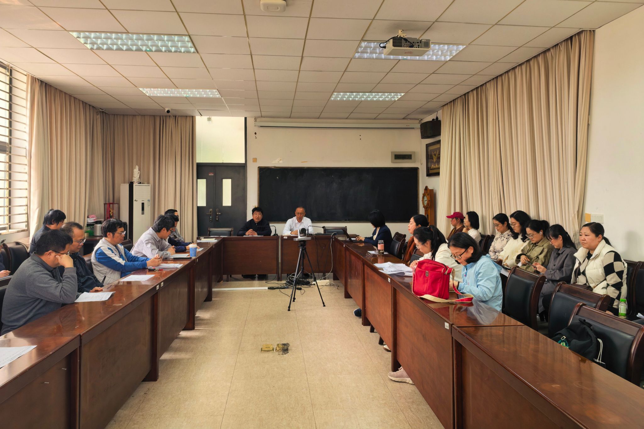 3月24日下午,文学院2025-2026学年春季学期期初教职工大会在林秀华文科楼二楼会议室召开,学院领导班子及全体教职工参会,会议由院长蒋晓光主持。