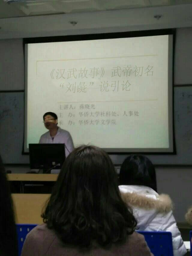 2016年4月12日晚,我院蒋晓光老师在文学院三楼A301多媒体教室做了《<汉武故事>武帝初名“刘彘”说引论》的学术报告。并吸引了文学院14级汉语言文学专业学生到场学习。