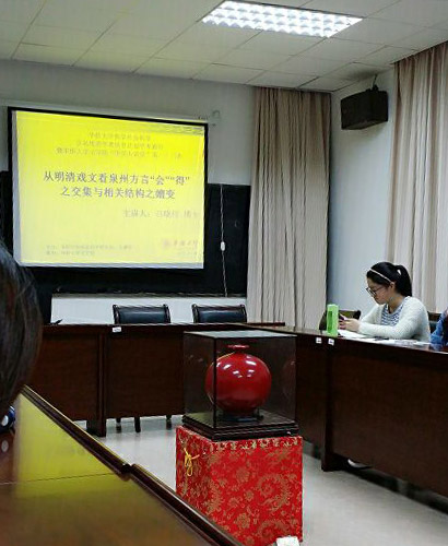 吕晓玲博士以戏文开篇,她为同学们诵读了几篇明清戏文,并通过戏文一些词句的变化和不同对厦门地区和福州地区的方言异同进行了比较,讲座过程中,她还向在座的同学们分享了自己博士生的经历,同时勉励同学们既要认清自己的方向,又不能丢掉学习的热趣。讲座过程中气氛活泼,吕副教授深入浅出的讲解和风趣幽默的语言获得了在场同学们的热烈掌声。