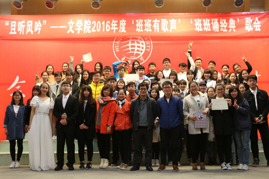 3月26日,文学院2016年度“班班有歌声”“班班诵经典”歌会在明德堂隆重举行。出席本次大会的嘉宾有文学院党委副书记陈英文、团委书记肖景川、辅导员郭逢成以及14、15级各班班主任。本次歌会也吸引了14、15级各班到场观看。
