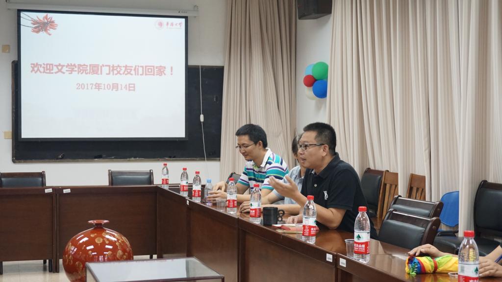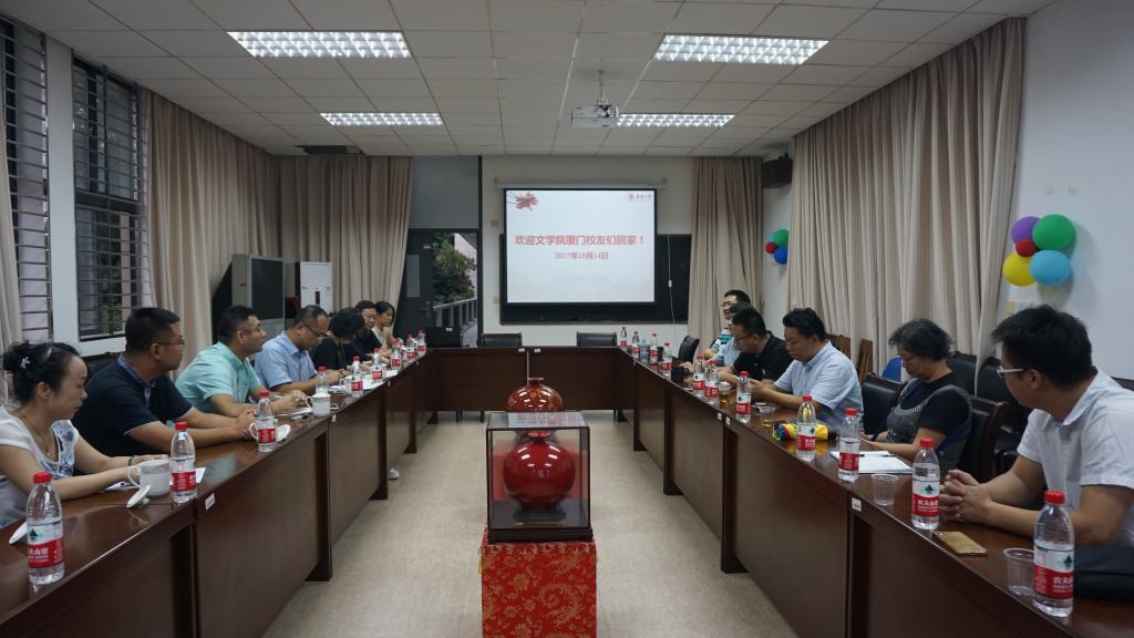 10月14日下午,文学院厦门校友会筹备组一行十多位校友在89级中文系校友施旌的带领下到访学院,文学院党委书记孙辉轩、新传学院党委书记李振跃、副院长王琰,校友处副处长王强及许绿翎等多位老师在学院接待了筹备组一行,并进行了座谈。