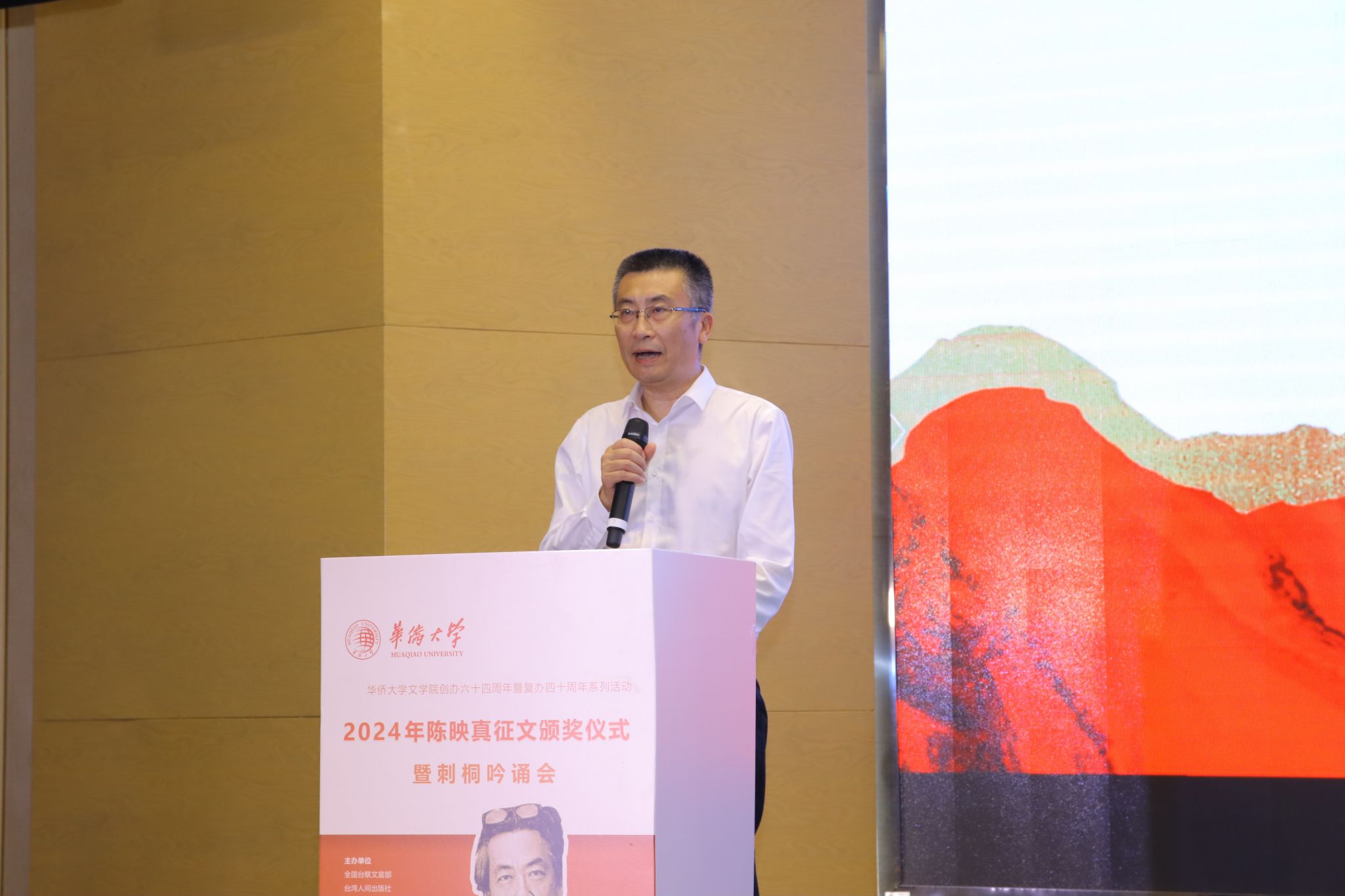 “陈映真以笔为旗,其文学与思想具有超越时空的恒久价值和旺盛生命力,表达对中华文化传承与发展的热切期盼,深深触动两岸人民心弦。”吴剑平在致辞中指出,陈映真的文学作品植根于中华文化的底蕴,包含了对台湾社会的观察,浸润着对民族意识的追求;陈映真的精神是两岸人民心意相通、同频共振的标志,值得两岸青年感悟、领会、发扬光大。他表示,华侨大学作为侨校、名校,将不辜负党和人民赋予的期待和要求,矢志不渝地走在推动两岸文化交流、祖国统一大业的前线,“引导两岸青年互学互鉴、相依相伴、同心同行,增强做中国人的志气、骨气、底气,共创中华民族绵长福祉,续写中华民族历史新辉煌。”