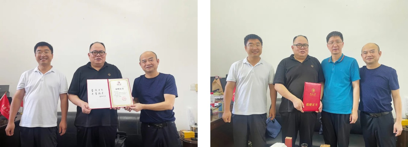 中文系93级校友吴雪海先生再次慷慨捐资3.2万元以继续支持文学院“松竹风”学生文创奖励基金,学院党委书记钟炎生和吴雪海先生签署捐赠协议,钟炎生书记和蒋晓光院长向吴雪海先生颁授捐赠证书,感谢他为公益教育事业所做出的卓越贡献。座谈会上,钟炎生书记高度赞扬了吴雪海先生的慷慨捐赠,他表示,此次捐赠不仅为文学院“松竹风”学生文创比赛注入了新的动力与资源,提供了有力的物质保障,更为学院的内涵发展注入了新的活力,是对学院教育理念的认同与传承。