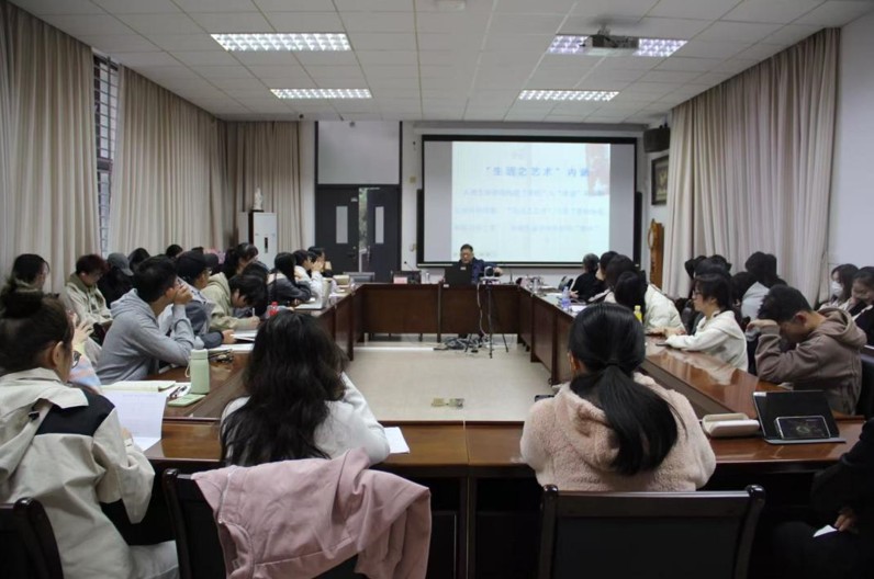 12月8日下午,上海交通大学人文学院特聘教授张先飞在文学院二楼会议室应邀开展“生活之艺术——一次中国文明重建的实验”讲座。本次讲座由文学院副教授田文兵老师主持,文学院部分师生参加。