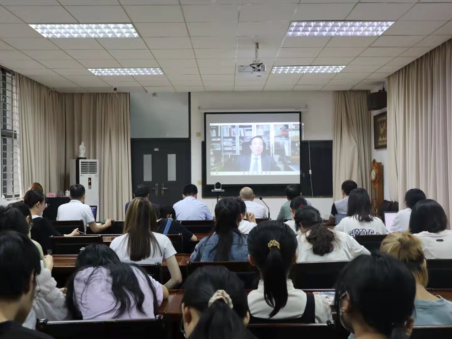 为贯彻习近平总书记重要指示批示精神,落实中共华侨大学第六次党代会精神,传承传播中华优秀传统文化,文学院积极打造、推出一个新的、面向海内外师生的学术交流、文化传播平台——“中华文化论坛”。2021年11月6日下午,华侨大学文学院中华文化论坛正式启动,启动仪式以线上线下的方式同步进行。北京大学中文系系主任、中国古代文学专业教授、博士生导师杜晓勤先生应邀线上参会并主讲第一讲。在论坛启动仪式上,院党委书记钟炎生,院长蒋晓光,北京大学中文系系主任杜晓勤教授先后致辞。论坛启动仪式由文学院副院长苗民主持。
