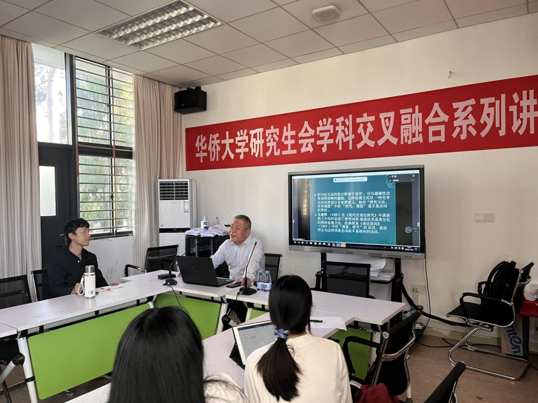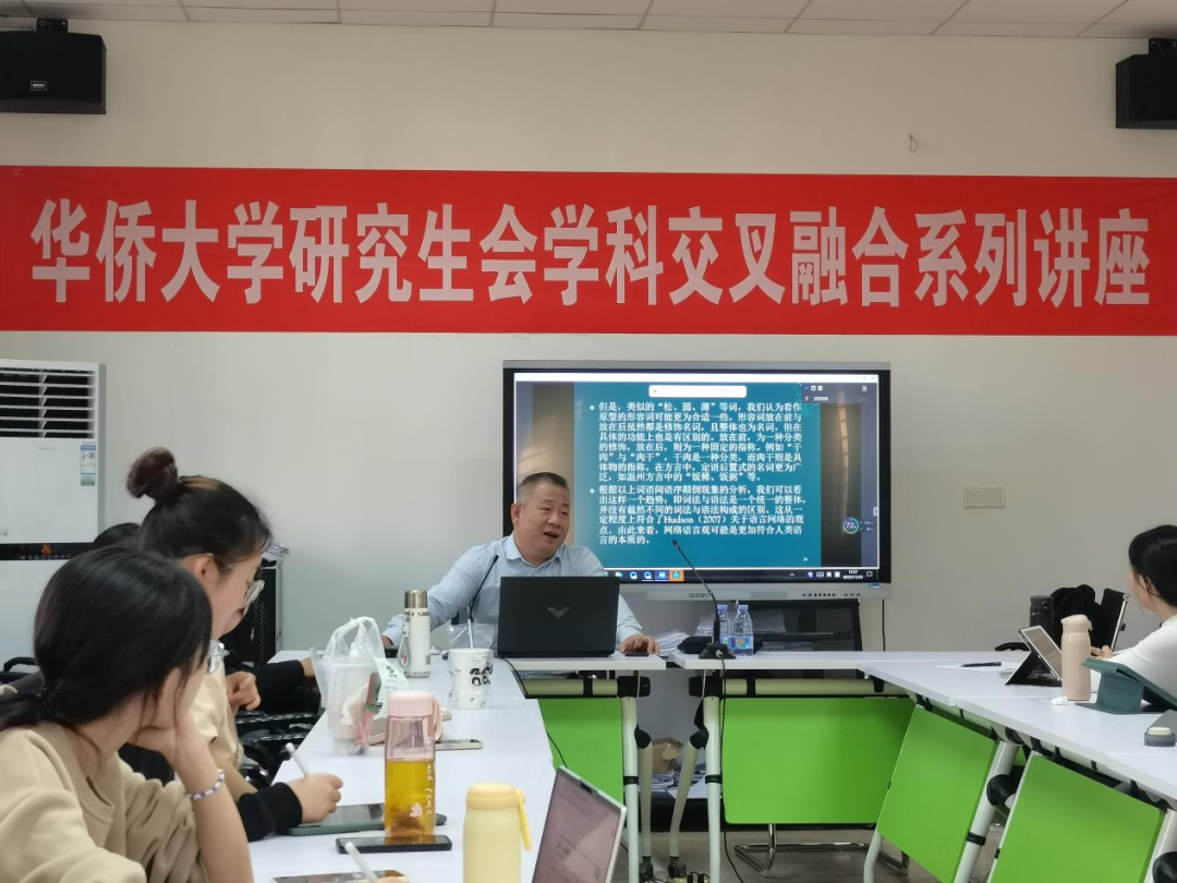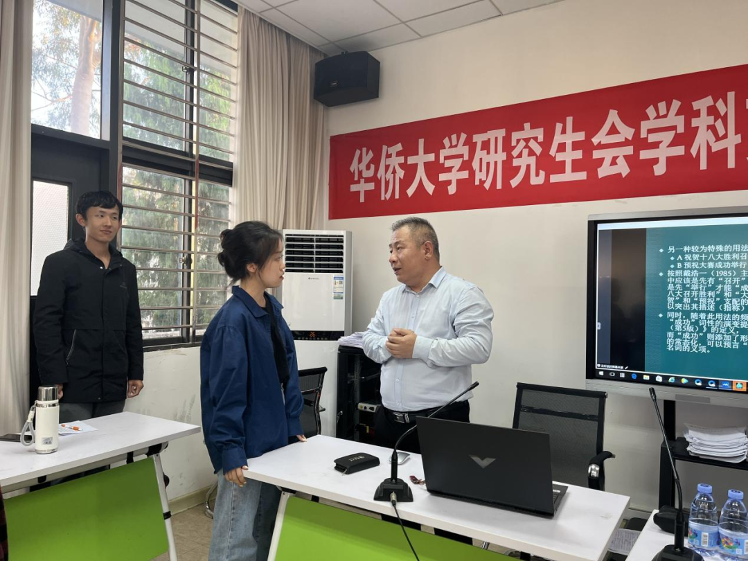 11月23日下午,文学院研究生第二场学术沙龙在文科楼三楼会议室顺利举行。本次沙龙以“汉语中语序颠倒承担的语法功能”为主题,文学院副教授王跃龙应邀担任主讲嘉宾,2023级研究生王炘铄主持,22、23级汉语言文字学方向研究生、其他方向研究生及本科生代表参与交流讨论。