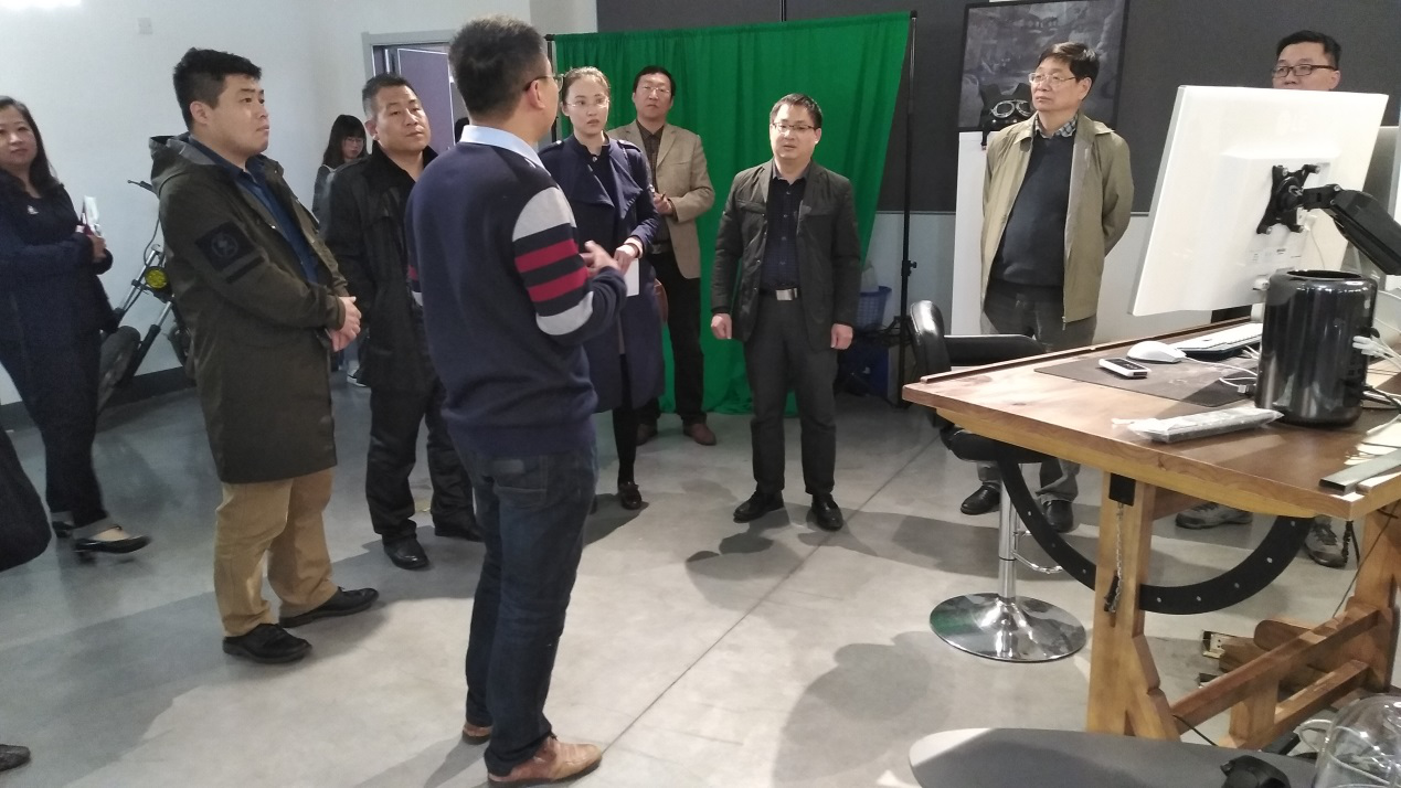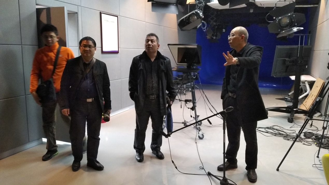 新闻与传播学院副院长王桂亭介绍学生演播厅