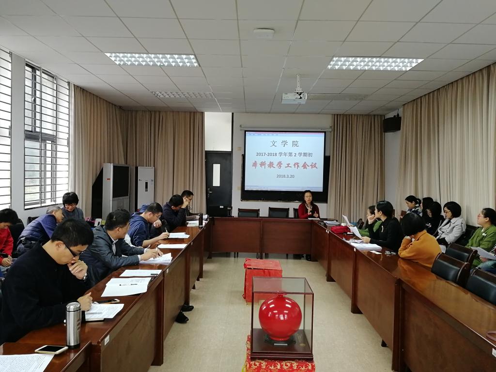 3月20日下午,文学院2017-2018学年第二学期本科教学工作专题会议在文科楼会议室A201召开,学院党政领导和全体教职工参加会议。会议由常彬院长主持。
