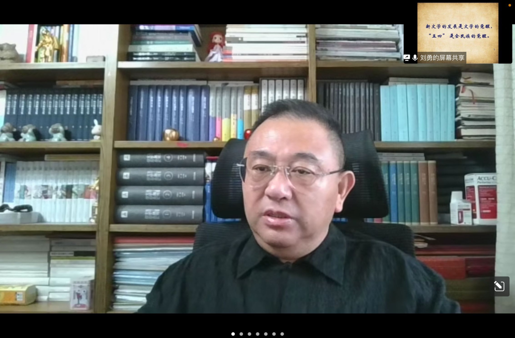 7月4日上午,华侨大学文学院通过腾讯会议举行第20周主题教学活动学术讲座。北京师范大学文学院教授、博导、学术委员会主任刘勇应邀线上参会并作了题为“今天为什么要纪念‘五四’”的专题讲座。文学院副院长苗民主持讲座,汉语言文学专业本科学生以班级为单位于华侨大学洪祖杭大楼共同参加此次讲座。