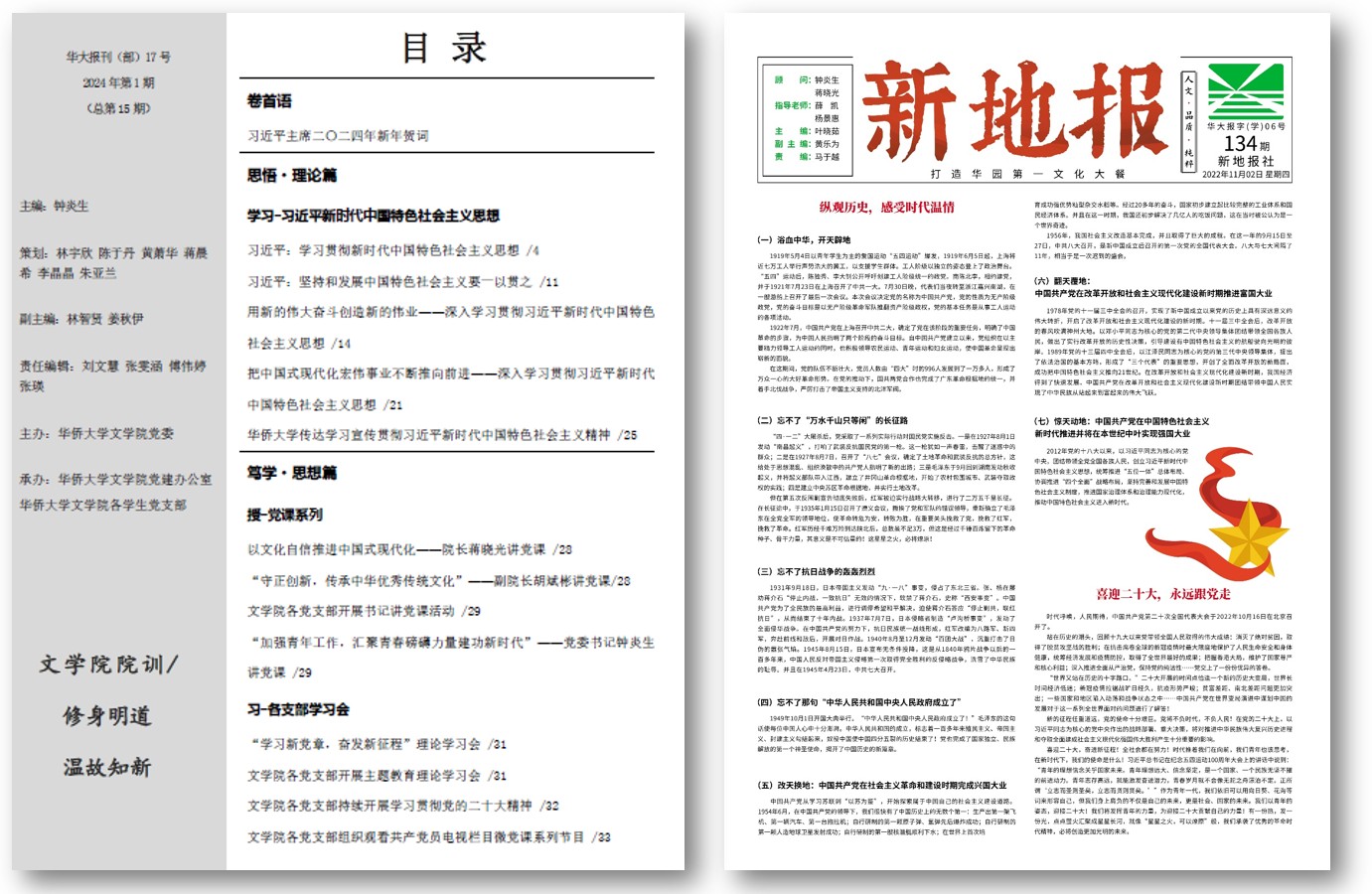 文学院从各个层面加强宣传,通过集中传达、建设阵地、榜样引领等方式在全院范围内营造良好的学习氛围。一是集中传达。线下通过每两周一次的班长支书例会,学院辅导员老师、学生组织主要负责人向各班班长、团支书传达学院有关学风建设的工作指导,为各班级做工作提醒和统一部署;班长支书再通过班会等形式传达近期工作要求,提高覆盖面;线上则充分发挥学院新媒体公众号、微博的宣传作用,运用活泼生动的文字、真实有趣的案例、丰富多彩的图片等调动学生参与学风建设的积极性。二是建设阵地,利用文学院新媒体平台、纸质媒体等载体宣传先进,鼓励后进。在文学院团委公众号中,推出“新青年说”、“国奖风采”、“国励风采”榜样专题,通过典型事迹展示,为文院学子树立榜样。同时兼顾传统纸媒,依托党刊《吾辈》、院报《新地报》扩大宣传阵地,积极宣传学风建设精神,做好学生的思想引领。三是榜样引领,通过先进个人与集体先进成果的展示和表彰,为学院其他学生树立标杆;组织优秀学长学姐交流分享会与读书座谈会,共享优秀前辈的宝贵经验;发布学风建设成果展示系列文章,使各班优秀成果看得见、摸得着、可借鉴、能学习,有助于激励学生积极加入并维护学院学风建设。