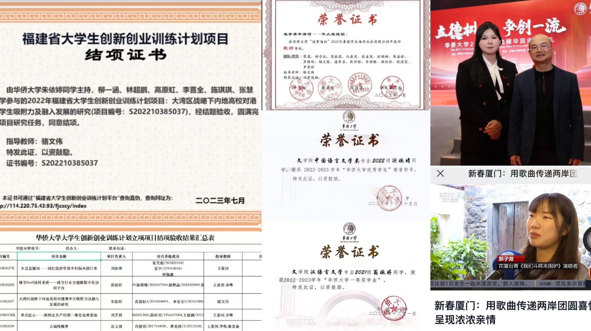 近年来,文学院持续推进境内外学生分类融合培养工程,坚持知识传授、能力培养、价值引领相结合,不断促进境外生的全面发展,取得了较好的成效。如近5年,境外生按期毕业率平均接近90%,先后有十余名境外生以优异的成绩考上国内外知名大学的研究生;“子衿”境外生成长计划坚持实行5年来,先后组织了研学、结对帮扶复习、文化探寻、羽毛球赛、主题观影等各类活动100余次/年,举办读书沙龙或阅读分享80余次/年,境外生提交1000余份/年文学作品和课后学习心得,激发境外生的学习热情,在学习、科创、文体及就业等方面取得明显成效,先后有百余人次成绩取得明显进步并获得奖学金和各类荣誉称号,境外生绩点超过4.0的有9人,最高绩点达到4.44,班级第5;许铭洄、林宜臻、詹凯玉、冯梓皓、王翠盈、钟宇欣先后获“星光耀华园”优秀学子;先后有数十名境外生在“逐梦海丝”寒/暑假社会实践、寒假返乡宣传社会实践、挑战杯课外学术作品竞赛等各类实创活动和文体活动中获校院级竞赛奖项;此外,境外生积极参与传播中华优秀文化,泰国学生杨正华毕业后回泰国参与小学母校的中文支教活动,印尼学生福佳参与泉州广电拍摄的《宋元中国看泉州·马来西亚留学生福佳在府文庙与孔子时空对话》,台湾学生郭子溦演唱《我们斗阵来围炉》,用歌曲传递两岸团结喜悦,获央视新闻采访报道。