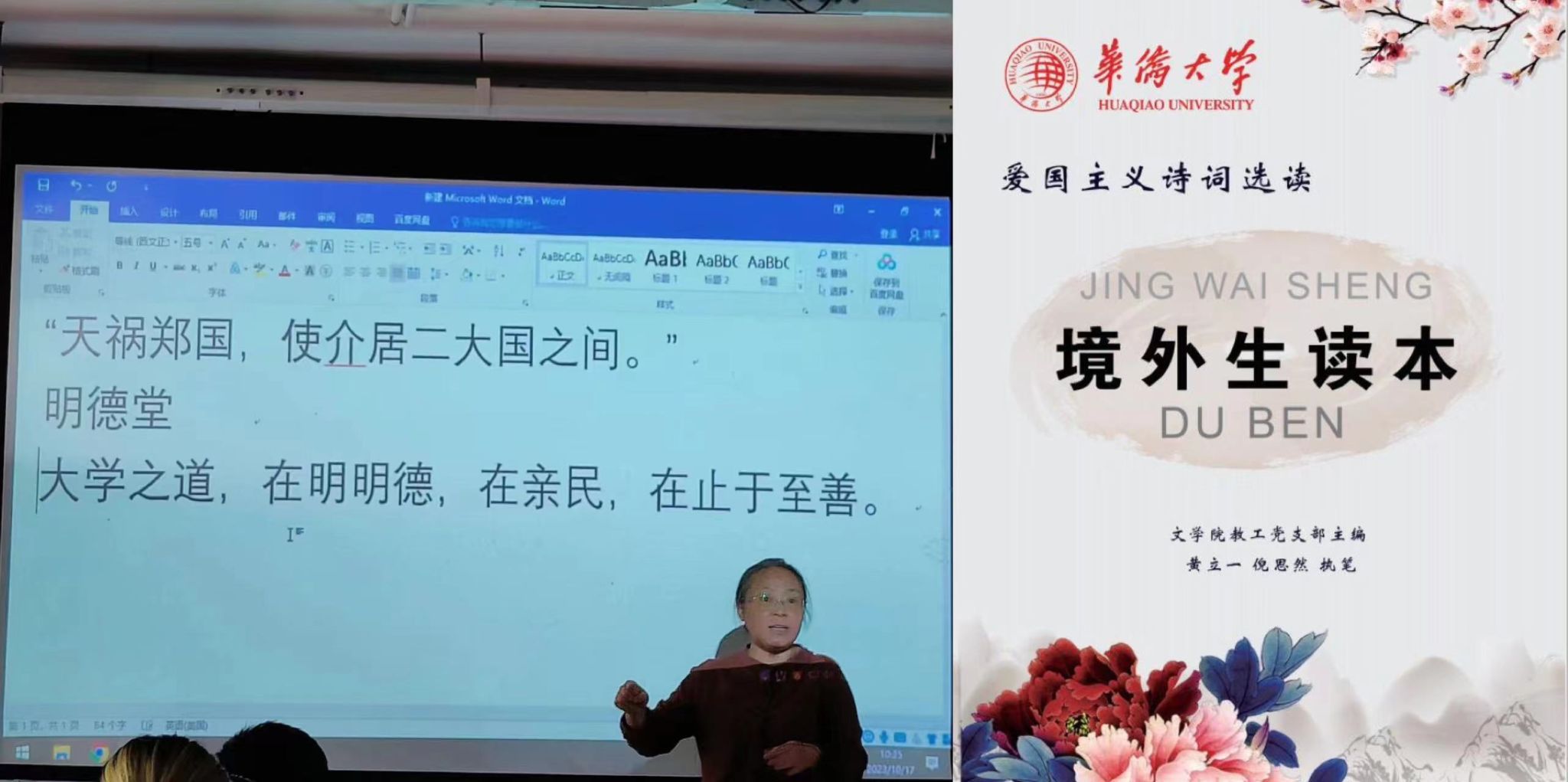另一方面,聚焦专业核心能力,强化根基培育。专业课教学实行境内境外学生混合编班,共同学习、融合交流。围绕阅读写作、沟通表达、学术创新、科技创新四类核心能力进行实践训练,强调语言文学理论知识与经典阅读,开设《中国现代文学》《中国当代文学》《中国古代文学史》《外国文学》《文学概论》《现代汉语》《古代汉语》《语言学概论》《中国思想史》《汉语国际教育概论》《汉语史》等主干课程,培养学生系统掌握汉语言文学基础知识和基本理论,提高文学修养;开展经典阅读类“《诗》《骚》精读”“《史记》《汉书》精读”等,督促写作练笔,提高写作能力;召集古代文学和海外华文文学方向资深教师,编写面向境外生传播传统文化和民族认同感的读本,在文化认同、文化自信上既抓好境内生教育,也抓好了境外生教育。
