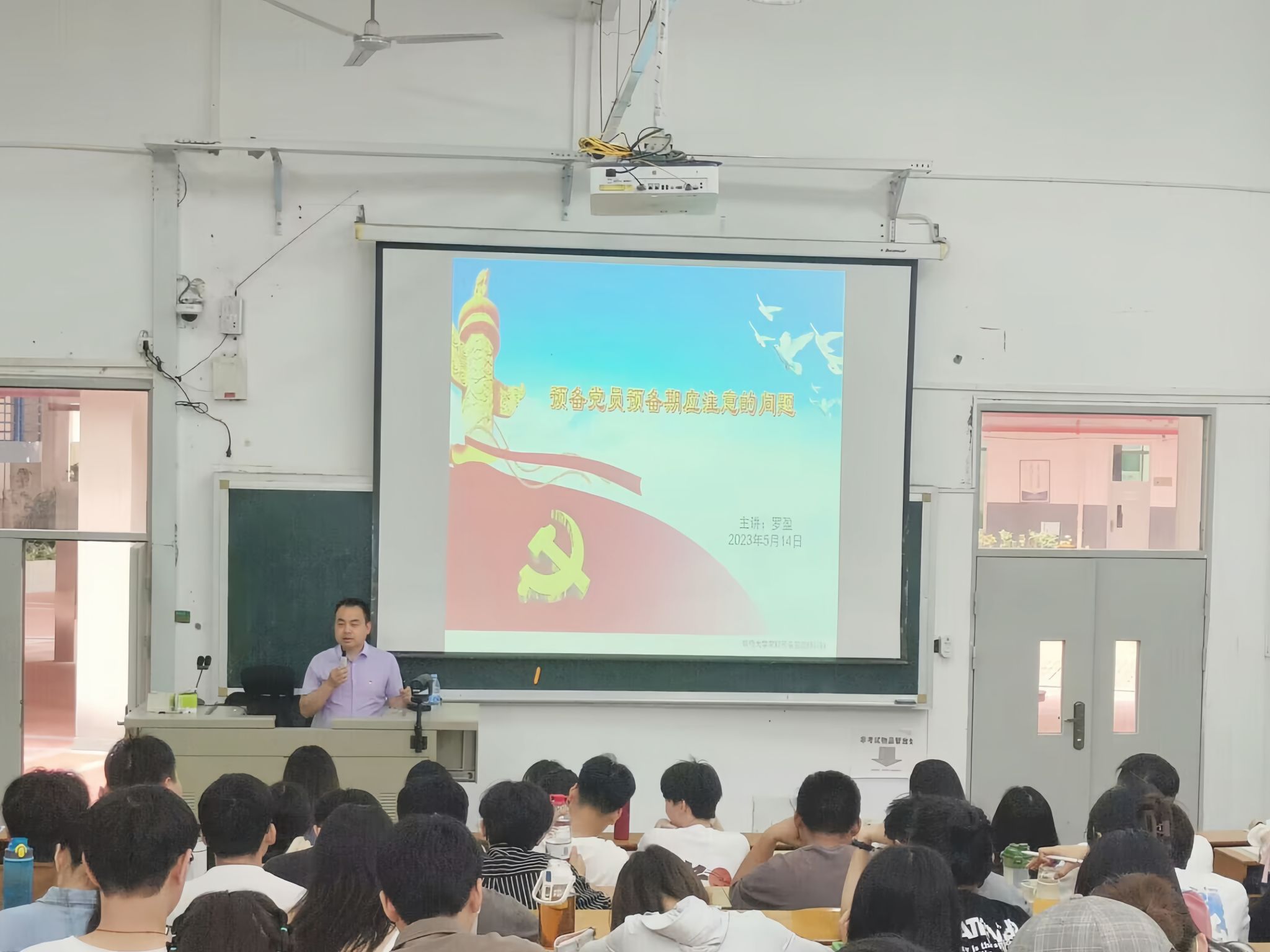福建省高校先进党务工作者罗盈老师围绕“预备党员预备期应注意的问题”这一主题为预备党员讲授党课。他着重讲解了预备期的重要性、预备党员的权利和义务、预备期满后的转正程序和预备期应注意的其他事项,还结合预备期几个真实案例介绍了预备期延期转正和取消党员资格的几种情形。最后,他勉励青年学生党员要坚持理想信念,志存高远,敢于担当,努力学习专业知识,争取早日转为一名中共正式党员。