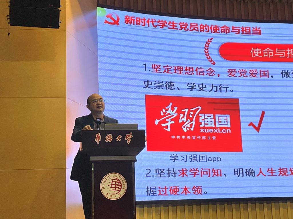 为全面贯彻落实习近平总书记在党史学习教育总结大会上的重要讲话精神、切实传达中国共产党华侨大学第六次党代会精神,2021年11月23日下午,文学院党委书记钟炎生于祖杭楼四楼明德堂,为文学院全体学生党员讲授了一堂主题为“争做新时代社会主义新青年——党史学习教育暨传达学习学校第六次党代会精神”的精彩党课。