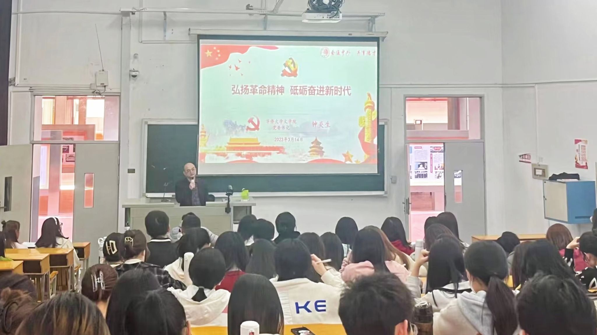 为深入学习贯彻党的二十大精神,用党的创新理论教育引导学生,凝聚思想共识,树牢理想信念。3月14日下午,文学院党委书记钟炎生以“弘扬革命精神 砥砺奋进新时代”为题,为文学院2021级、2022级全体入党积极分子讲授了一堂生动的党课。
