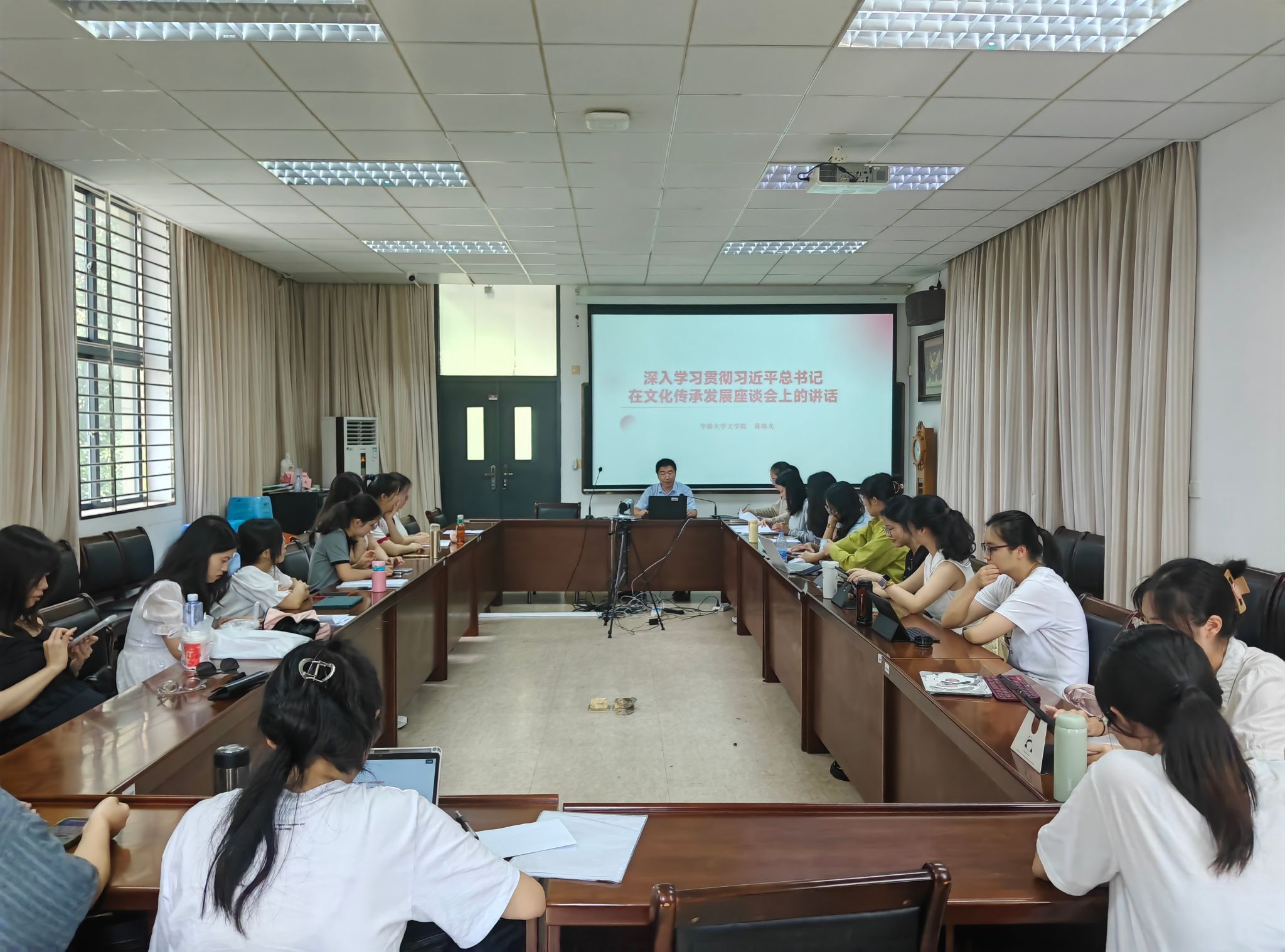 6月28日上午,文学院院长蒋晓光于林秀华文科楼二楼会议室,以“深入学习贯彻习近平总书记在文化传承发展座谈会上的讲话”为主题,为研究生党支部全体党员讲授了一堂精彩的党课。