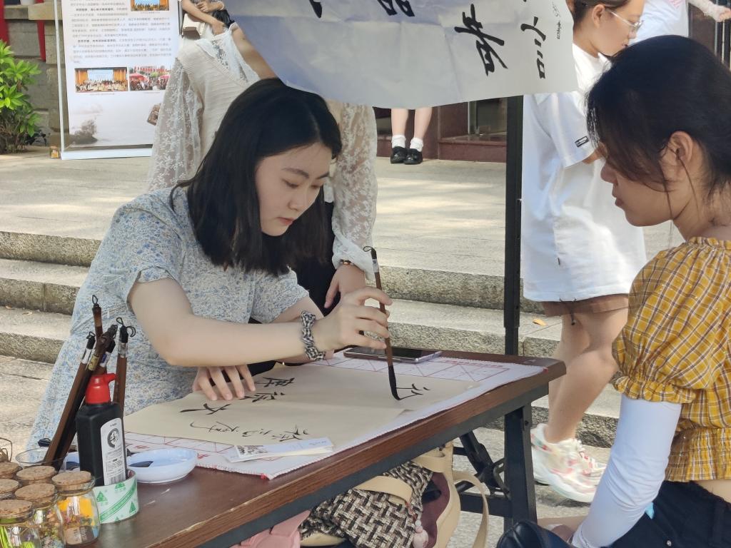 摊点上还备有笔墨纸砚,鼓励大家进行书法创作。陈玉琳、陈杨、罗慧敏、荆雪菲、柴相楠、陈诗滢、柳晴晴、郑秋霞、谢素清、吉尔莫罗英等多位党员同志积极参加,或誊写经典诗词,或记撰人生格言,传递信念,寄语新生。