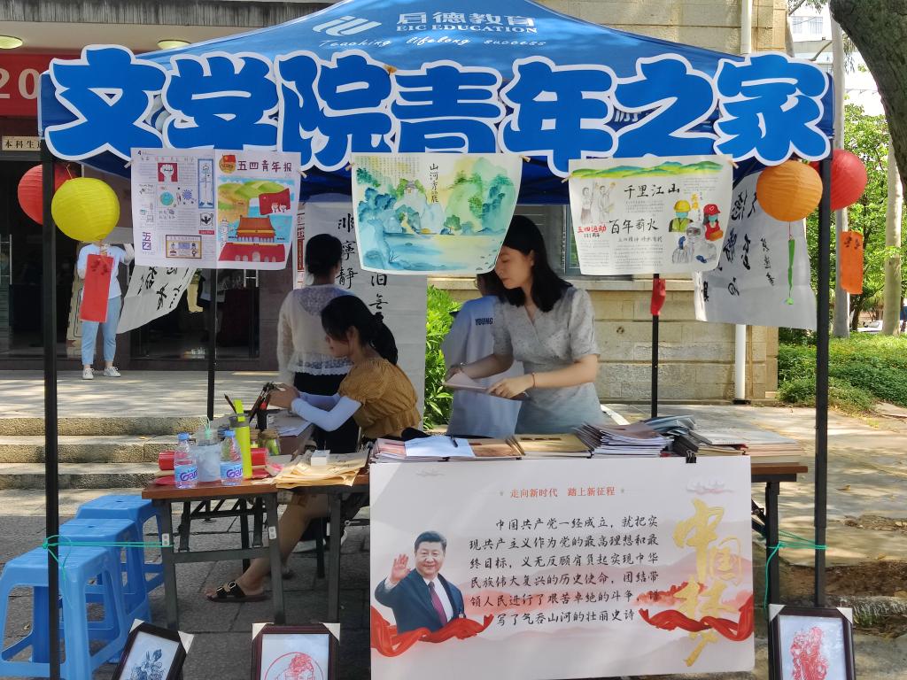 9月5日早,当晨曦徐徐拉开了一天的帷幕,华园大道上已陆续出现了不少新的面孔。走近文学院门前,党建办设置的党员示范岗摊点——“文学院青年之家”各处已经准备就绪,静候21级新生的到来。