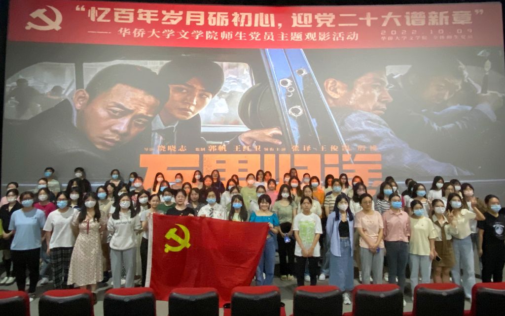 10月9日晚,文学院党委组织开展2022年“忆百年岁月砺初心,迎党的二十大谱新章”全体师生党员主题观影学习活动。本次活动旨在通过观看主旋律电影《万里归途》来学习影片中所传递的中国精神、中国担当,追忆初心使命,弘扬爱国精神。进一步深化党员的先锋模范意识,以饱满热情和昂扬状态迎接党的二十大胜利召开。