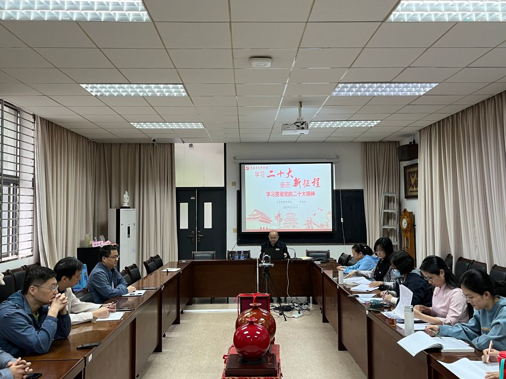 为深入学习贯彻党的二十大精神,11月1日下午,文学院党委书记钟炎生于在林秀华文科楼二楼会议室,为学院全体教工党员讲授了 “学习二十大,奋进新征程--学习贯彻党的二十大精神”主题党课。