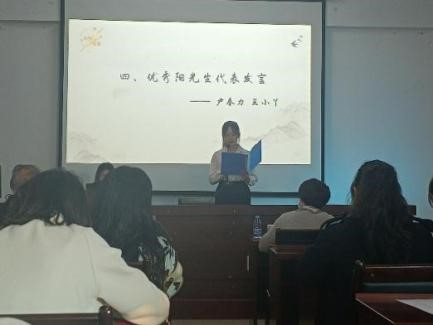 会上,2020级阳光成长计划生代表尹春力在发言中讲述了自己对于“星烛互耀”活动中师生“互帮互助、互促互带”的理解。2021级阳光成长计划生代表王小丫则表示,每代人都有自己的职责,我们的责任就是要承前人之志,接过炬火,借着星光将希望传递下去。两位阳光成长计划生代表的发言让在座师生感受到了“星烛互耀”活动的重要意义。