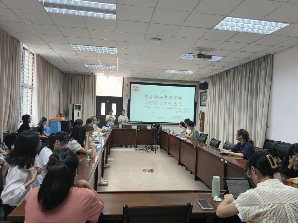为营造良好的阅读氛围,激发阅读兴趣,提高阅读能力,在阅读中铸牢中华民族共同体意识,我院举办了“华夏异语书香浸润,福籽同心文韵悠长”博雅读书会。7月16日,博雅读书会终期汇报会于文学院二楼会议室顺利举行。文学院教师苏文健、林英德、张夏珍、张祐睿、辅导员赵越及各读书小组的同学参与本次活动。