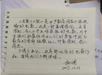 观影结束后,大家写下自己的感想交给班长。以下是班级同学的观后感。