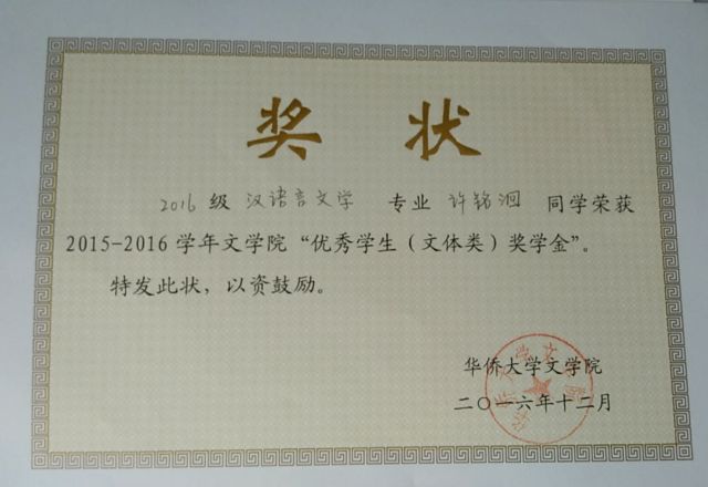 在这期间,我明白什么是一分耕耘一分收获,什么是负责任,什么是严以待己宽以待人,什么是坚持,还有心中的梦想。在马来西亚,华教尚未平等,师资也一直面临不足的难题。学习这个专业,我知道我有一个使命,我希望在华大学习的四年里,我能获得更多的资源,追求教育这方面的了解和知识,清楚目标。毕业后回到需要我的地方,去服务那里的人。把中文教育甚至中华传统文化带回我们那里,我们的根在中国,我们要把这里的文化传播于我们的下一代,我一直谨记我们的祖籍是中国,母语是中文!
