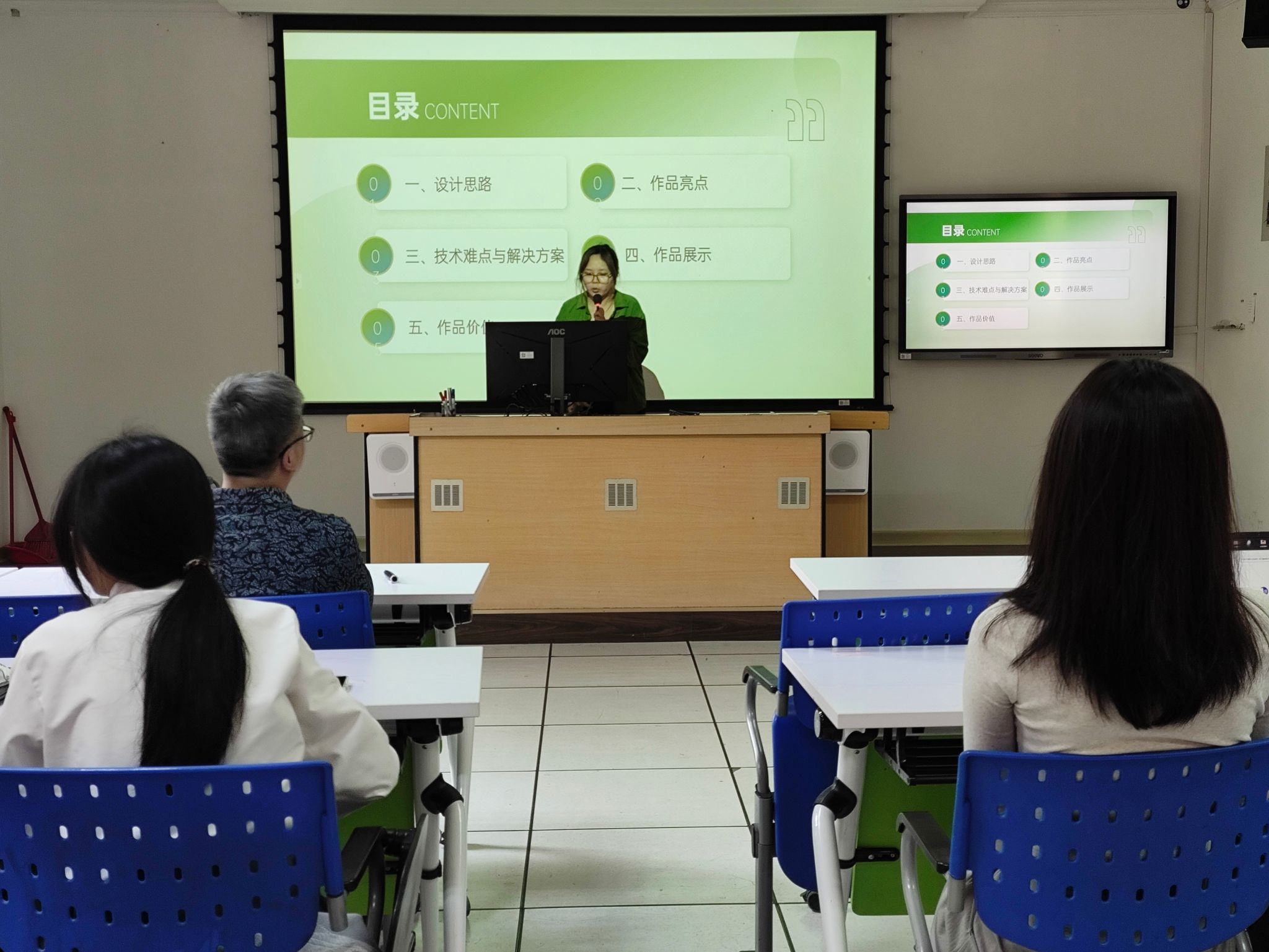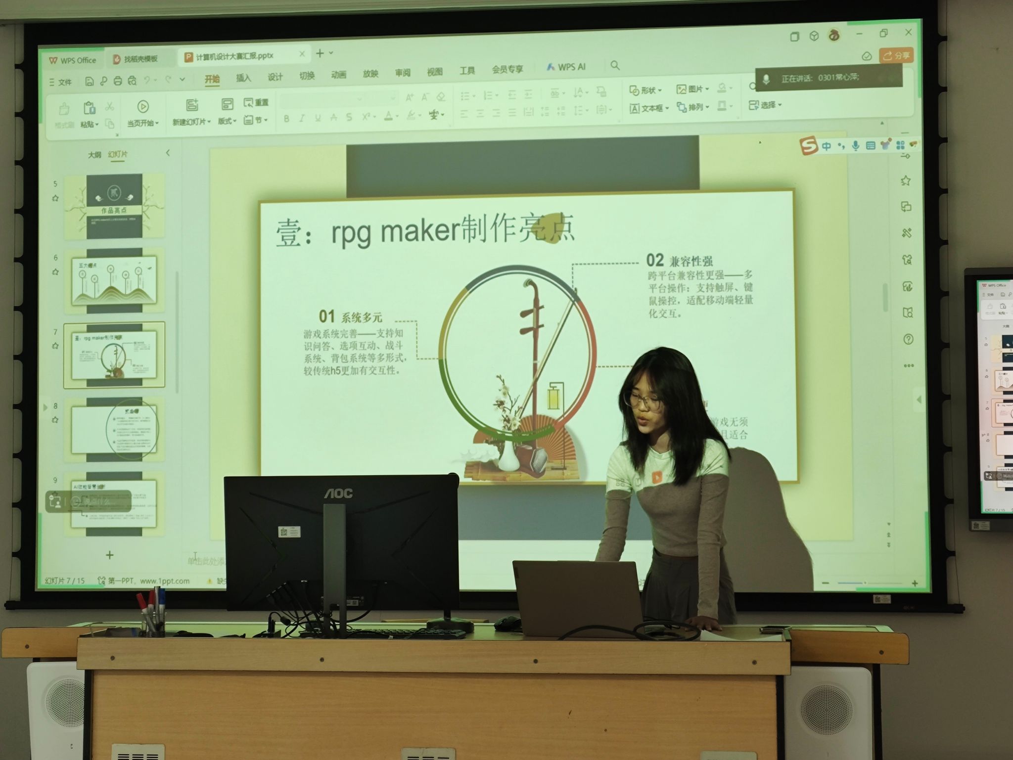 汇报中,团队分享了创作过程中的技术突破与挑战。技术实现上,团队融合DeepSeek、即梦AI等多工具链:先用AI生成4K分辨率的水墨风格场景,再通过Procreate手动修正"角色五官突变"等细节;运用剪映拼接动态化片段时,创新采用分轨处理技术解决配音机械感问题。在AI动画生成环节,面对角色变形、画风混杂等问题,团队通过优化训练数据和分层渲染技术,最终实现了水墨风格与动态效果的和谐统一。此外,智能配音的情感适配、静止图像动态化等难题也被逐一解决,体现了成员们跨学科协作的能力。